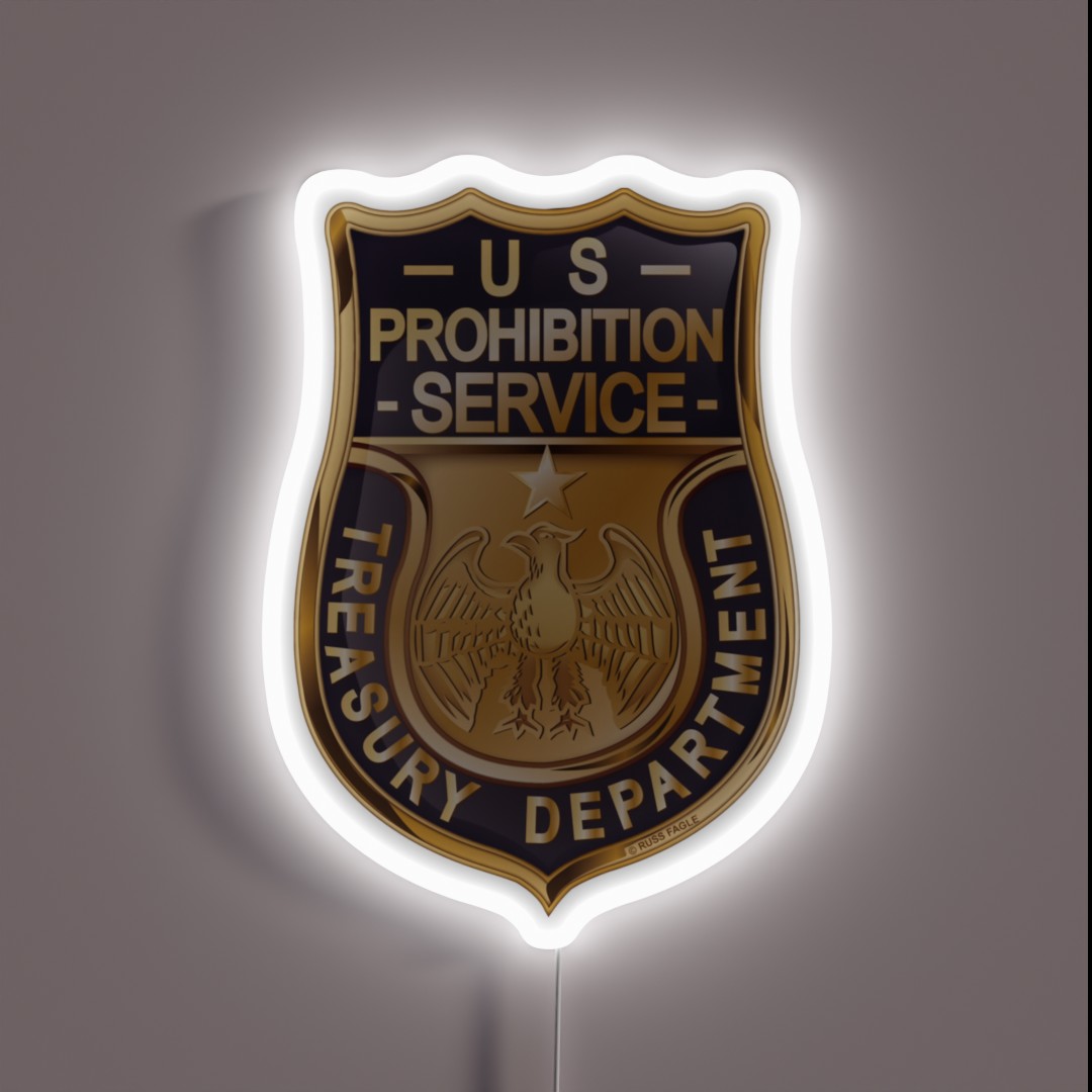 Add a touch of rebellious nostalgia to your space with this high-quality US Prohibition Service Badge RGB neon sign, featuring vibrant colors and retro design inspired by the infamous era of Prohibition in the United States.