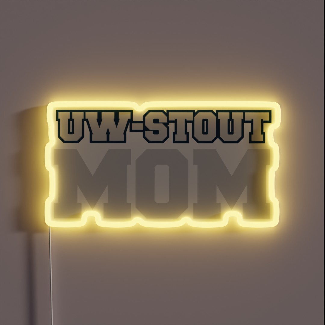 The UW Stout Mom RGB neon sign features: