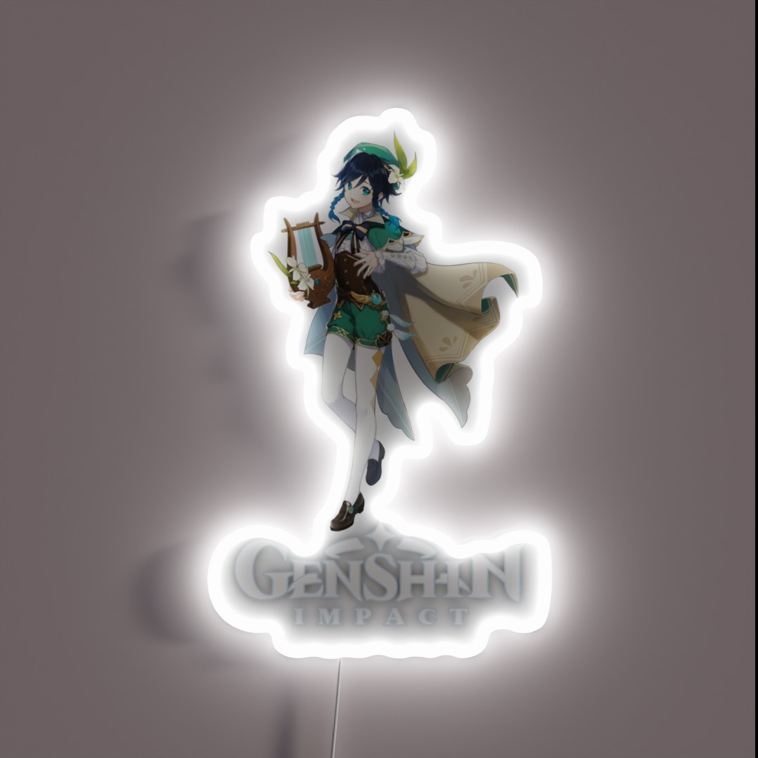 Illuminate your gaming space with the Venti Genshin Impact RGB neon sign, bringing the Seven Realms to life in vibrant colors, perfect for fans and gamers alike.