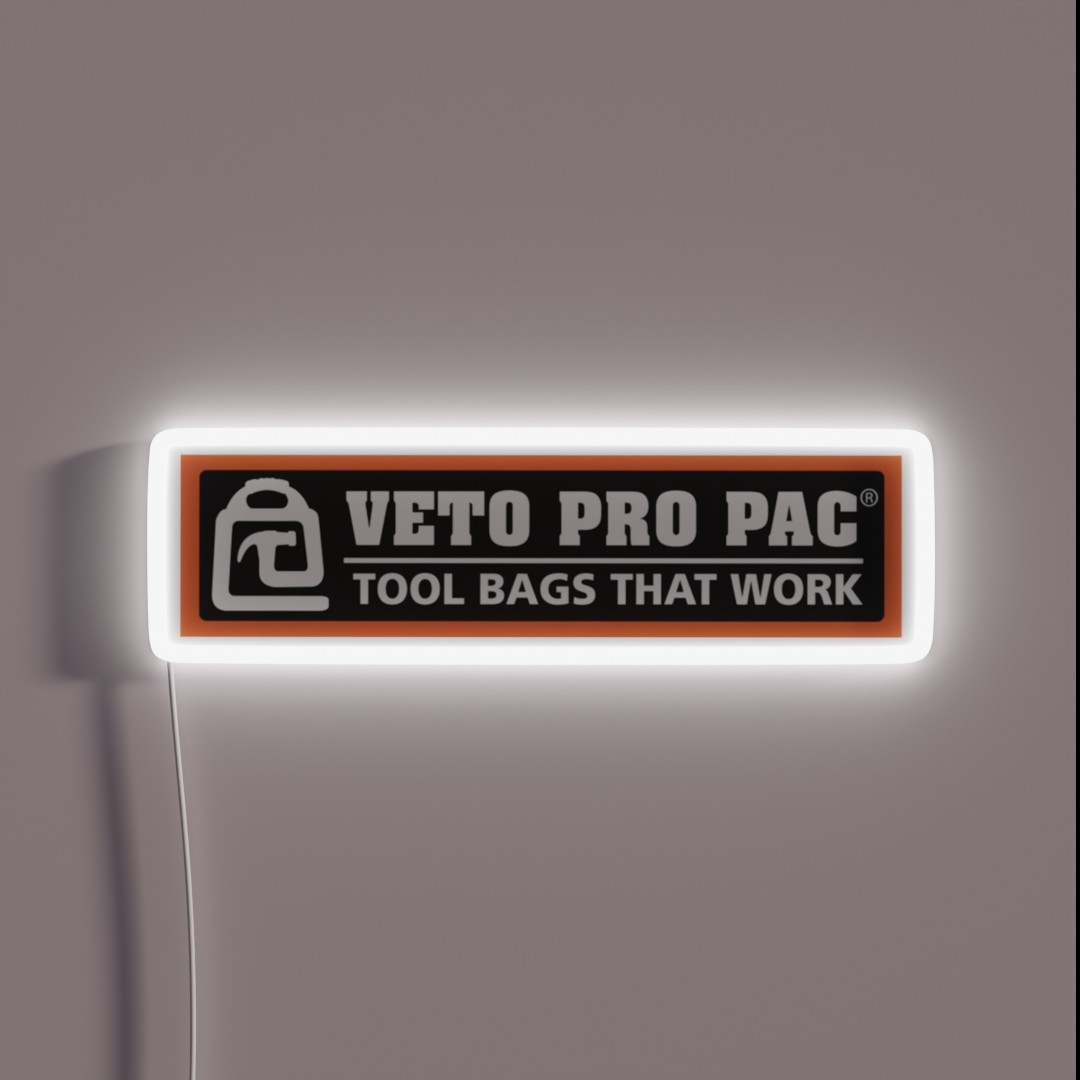 Elevate your workspace or home with a touch of modern style and precision. This stunning logo sign features the iconic Veto Pro Pac Tools design in vibrant RGB colors that can be adjusted to suit any environment.