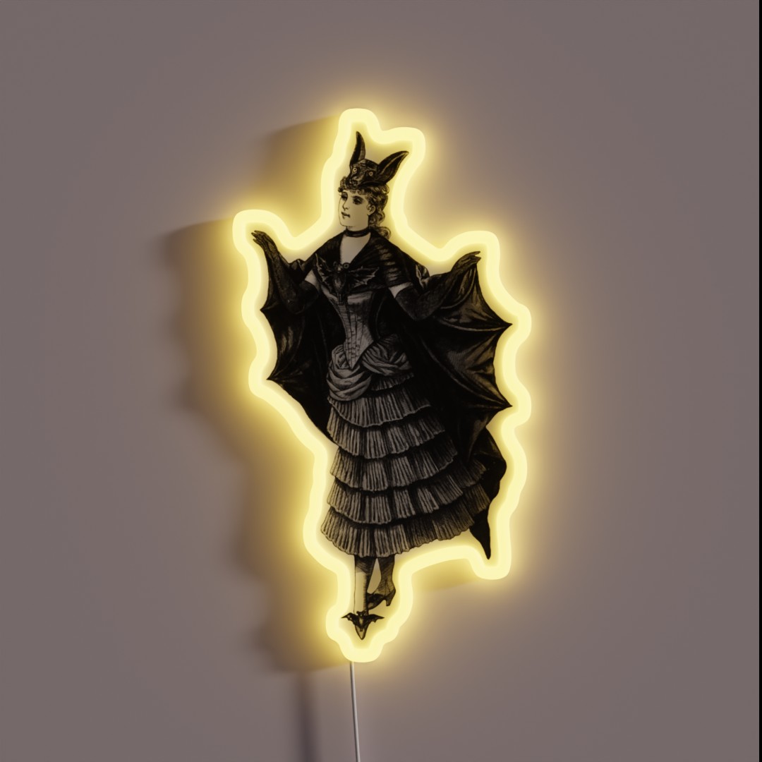 Elegant Victorian bat silhouette lights up with vibrant RGB neon colors, adding a touch of mystical sophistication to any room.