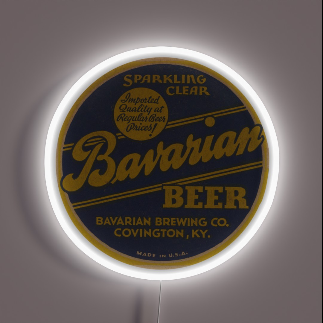 Unique vintage-style RGB neon beer sign featuring the iconic Bavarian Brewing Company logo from Covington, Kentucky, perfect for beer enthusiasts and fans of retro decor.
