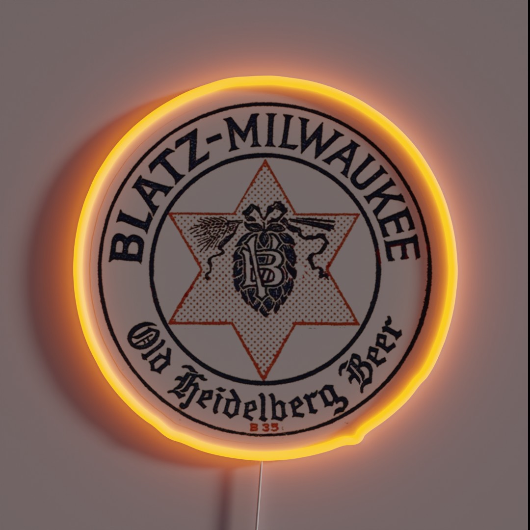 Authentic vintage Blatz Old Heidelberg beer sign from Blatz Brewing Co in Milwaukee, Wisconsin, featuring colorful RGB neon lights that evoke nostalgia for the classic brewery.