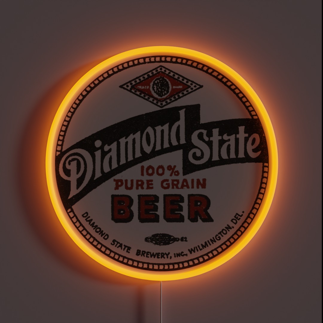 Step back in time with this authentic replica of a vintage beer sign from the iconic Diamond State Brewery, nestled in Wilmington, Delaware. This stunning piece of nostalgia is now available for your home or business to display.