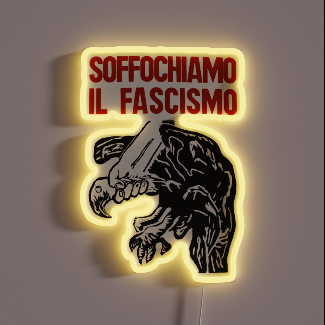Vintage Italian Anti Fascism Print Suffocate RGB Neon Sign