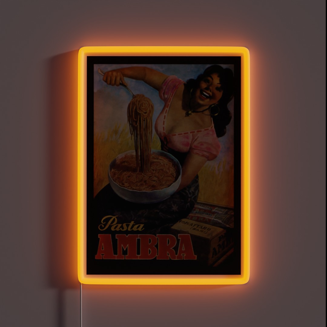 Vintage Italian Pasta Poster Food Art Italy RGB Neon Sign