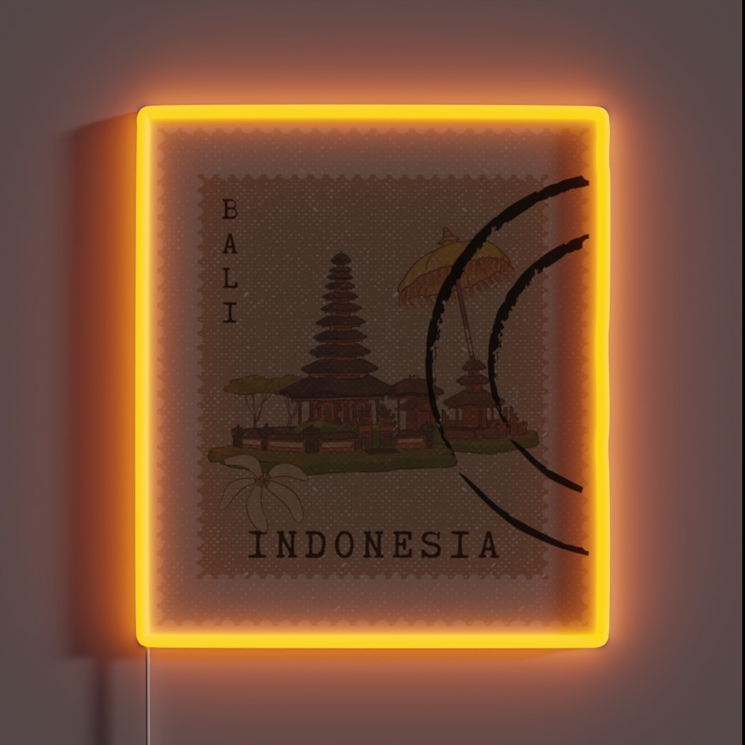 Brighten up your space with this unique Vintage Stamp Bali Indonesia Style RGB Neon Sign, featuring vibrant colors and eclectic design, perfect for a bohemian-inspired home decor.