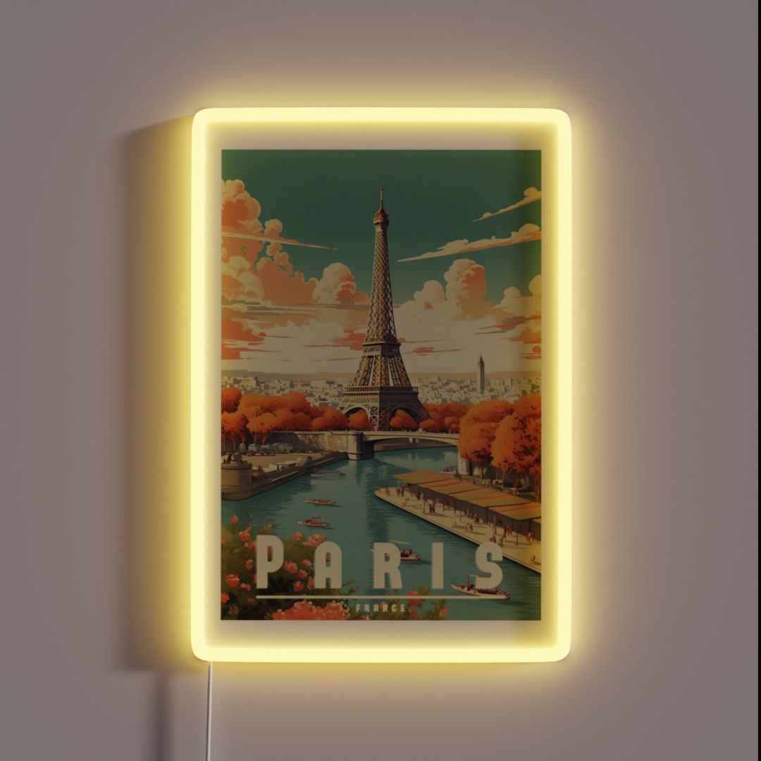 Bring the magic of the City of Love into your home with this stunning vintage-inspired travel poster featuring Paris in all its romantic glory, now available as a vibrant RGB neon sign.