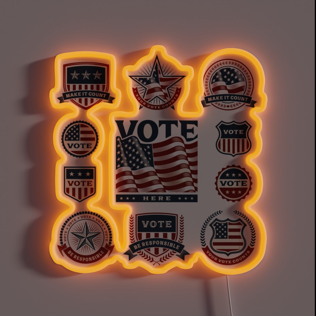 **Vintage USA Election Labels and Badges RGB Neon Sign**