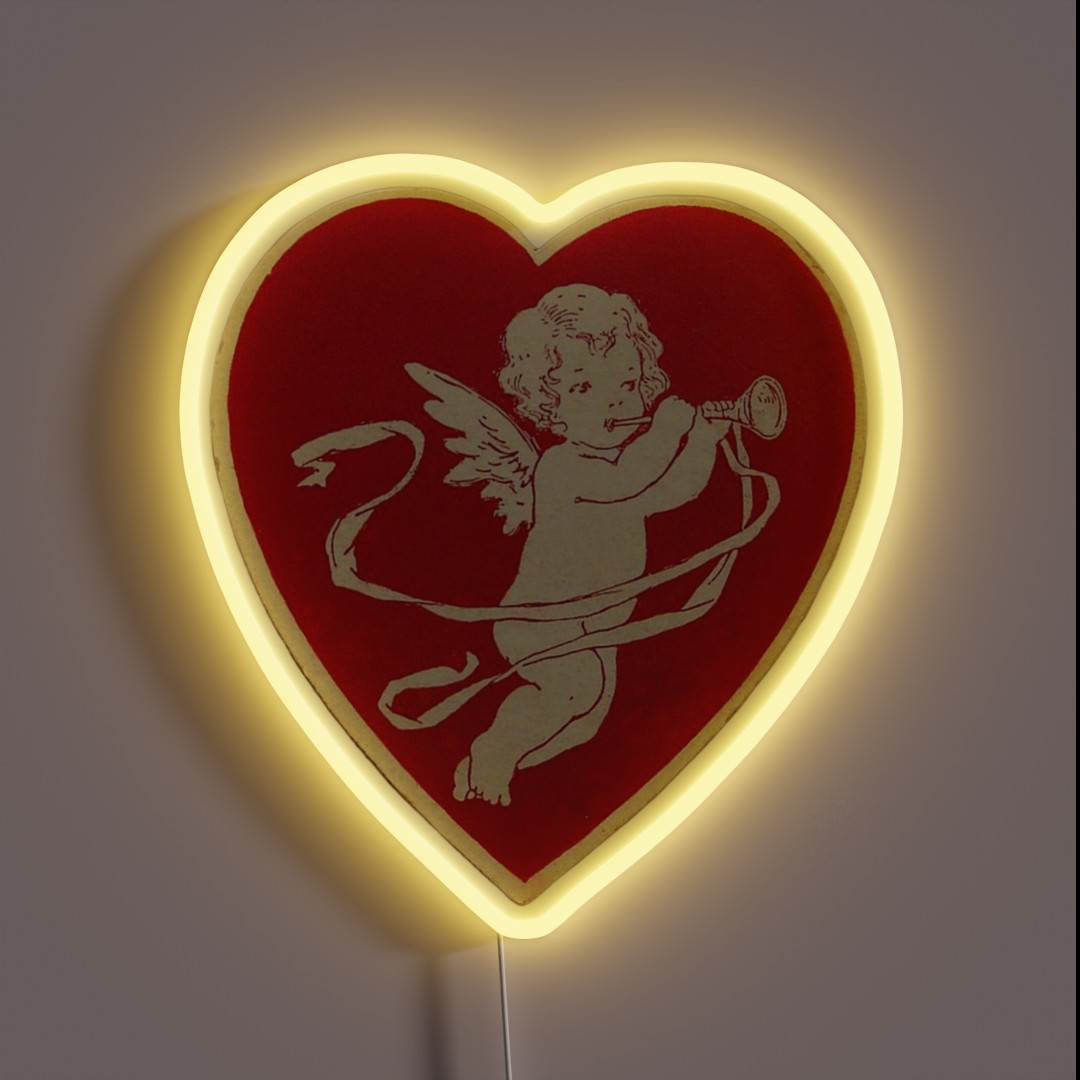 **Vintage Valentine’s Day Cherub in Heart RGB Neon Sign**