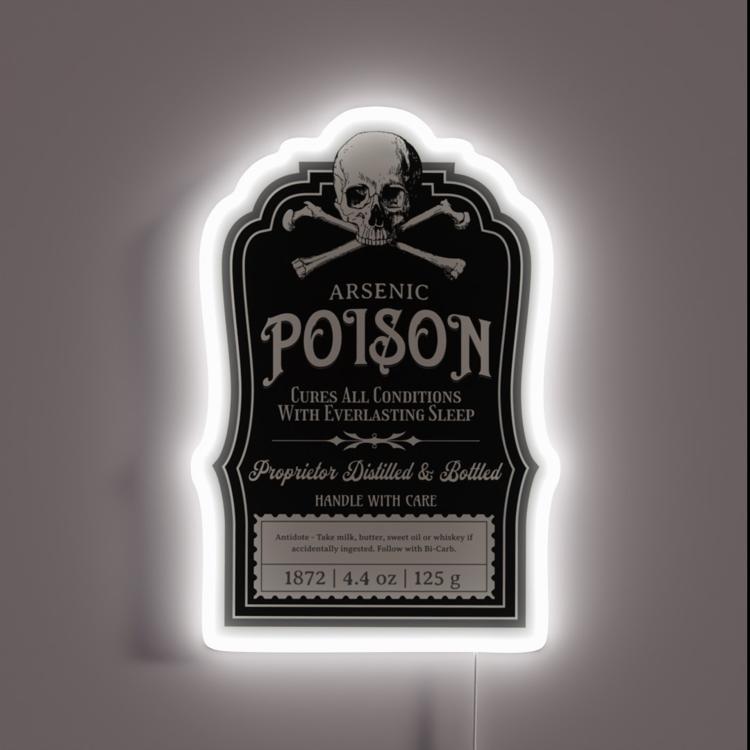 Add a touch of macabre elegance to your space with this unique, handcrafted Vintage Victorian Poison Apothecary Arsenic Label Gothic RGB neon sign, featuring intricate designs and eerie charm.
