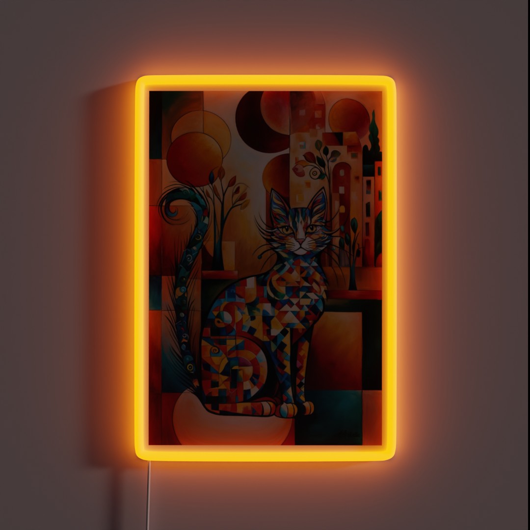 **Vivid Cubism Artistic Cat RGB Neon Sign**