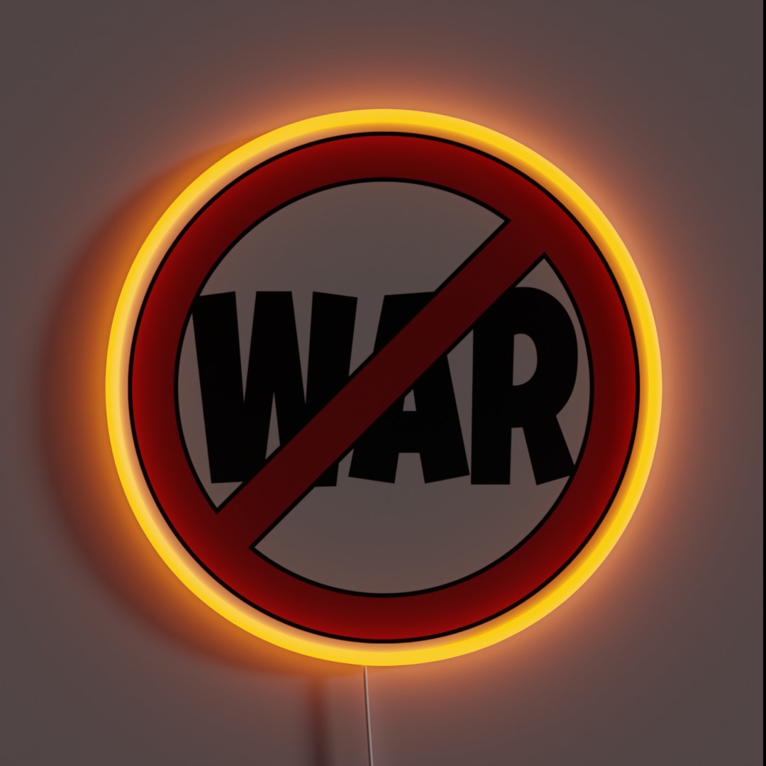 Anti-war statement in your home – ‘Voice Against War’ RGB neon sign with vibrant colors and thought-provoking message.