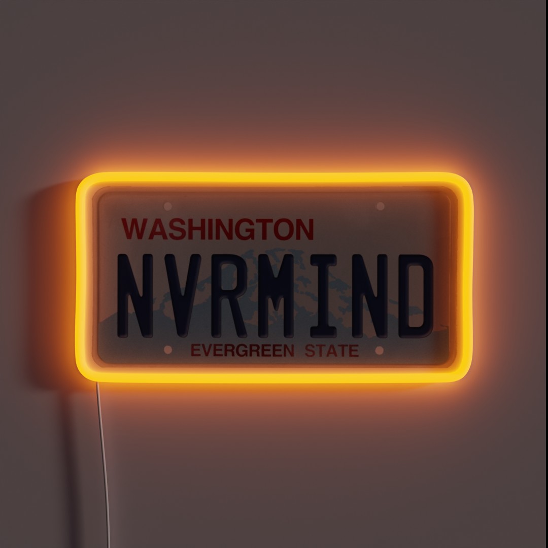 **Shine On with Your Washington Pride: NVRMIND License Plate Neon Sign**