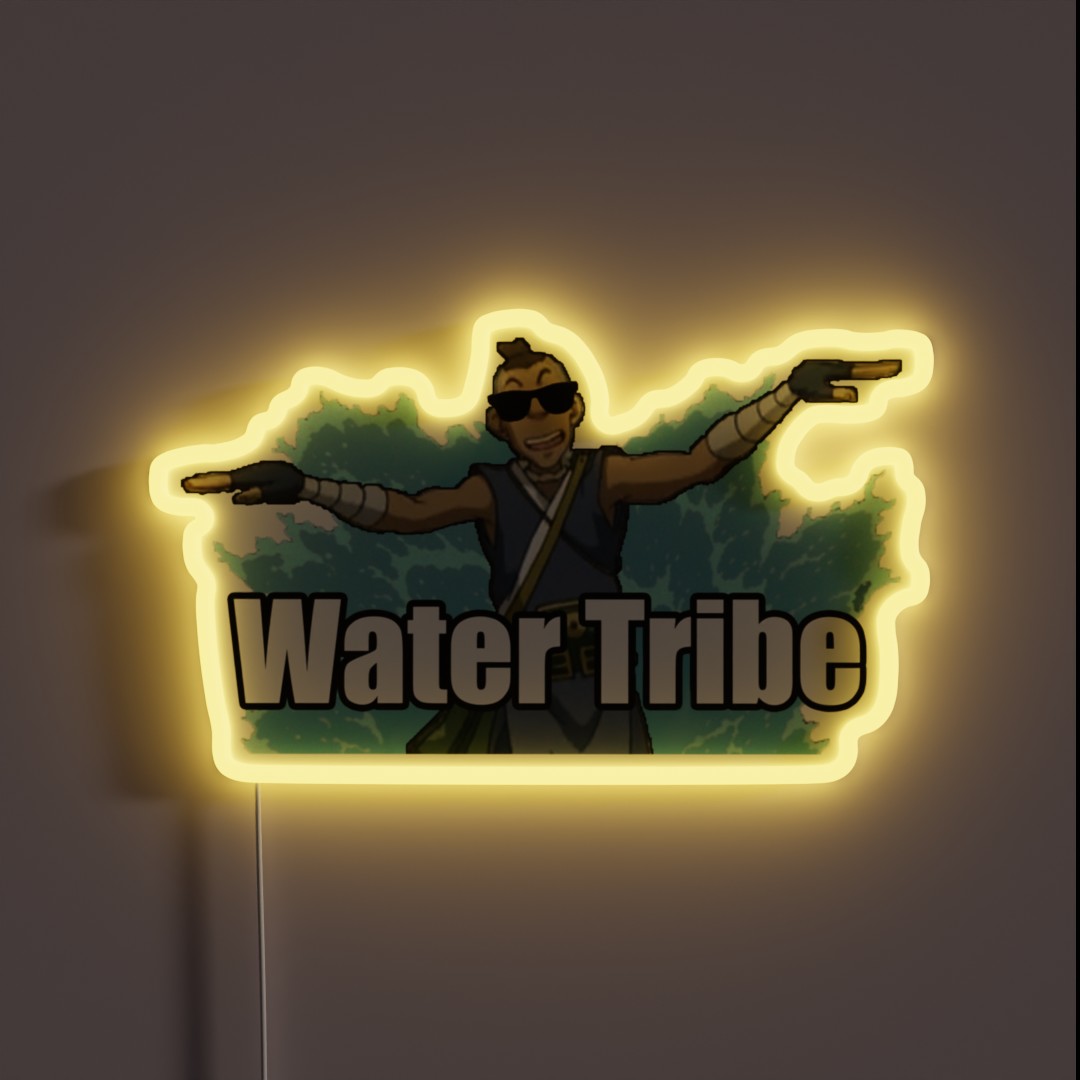 Vibrant Water Tribe RGB Neon Sign: Add a splash of color and personality to any room with this LED-lit, customizable neon sign featuring the iconic Water Tribe logo in radiant RGB hues.