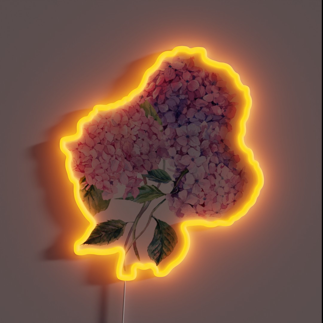 Elevate your home decor or office ambiance with our stunning Watercolor branch of blooming hydrangeas RGB neon sign. This unique and captivating piece combines the softness of watercolor art with the modernity of LED technology, ensuring durability and low maintenance.