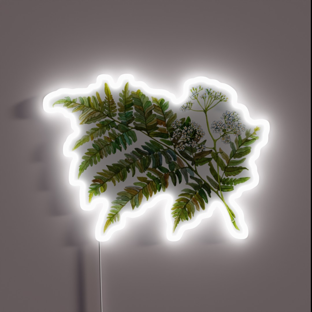 **Watercolor Fern and Flowers RGB Neon Sign**