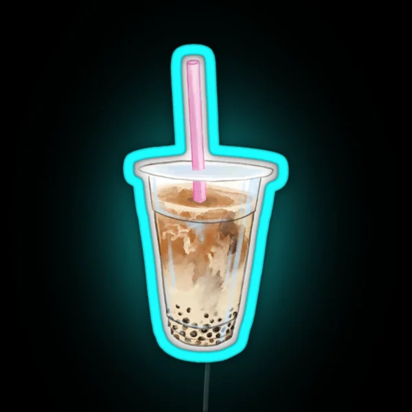 Watercolor Jasmine Milk Tea Boba RGB Neon Sign