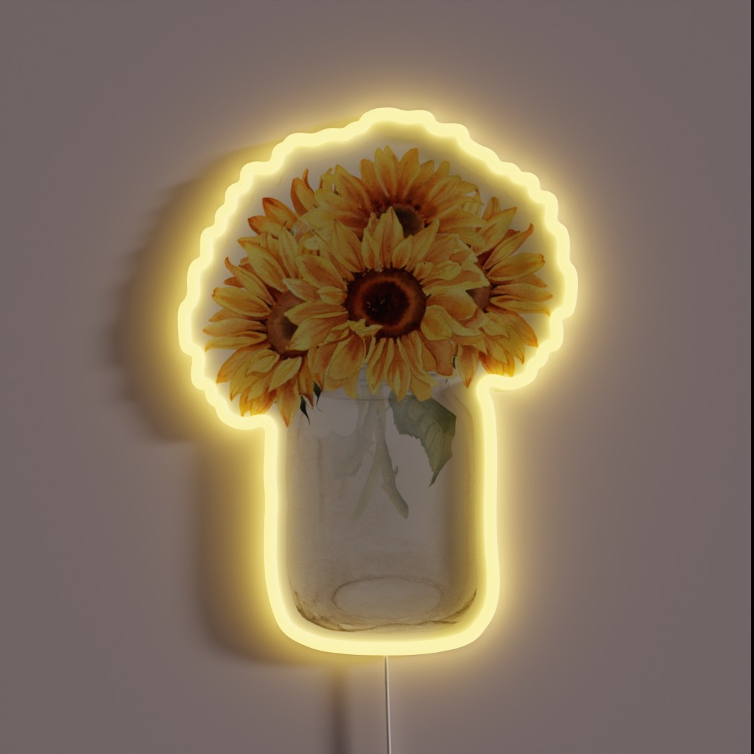 Watercolor Rustic Sunflower Bouquet In Mason RGB Neon Sign