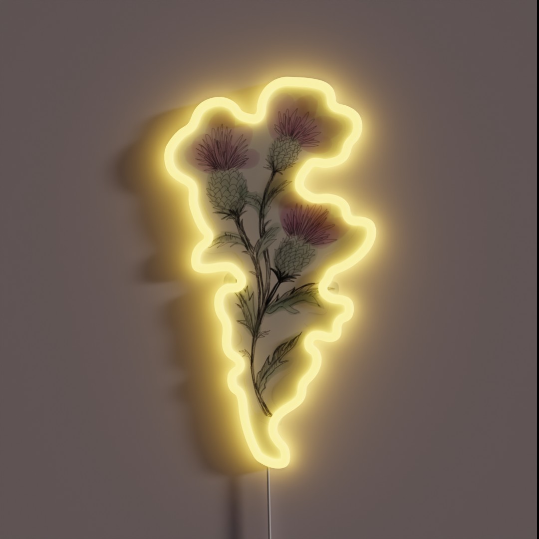 Introducing the Watercolor Thistle RGB Neon Sign, a vibrant and eye-catching decorative piece that adds a touch of elegance to any room. This unique sign features a beautiful watercolor design of thistles in soothing colors, making it an ideal choice for those who love floral motifs.