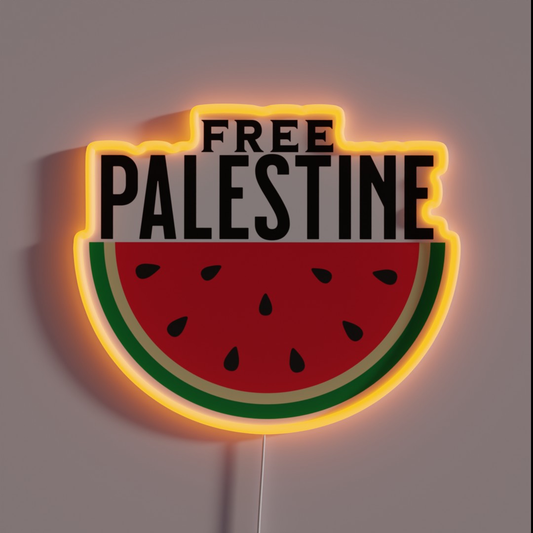 Watermelon Free Palestine Free Gaza Arabic RGB Neon Sign