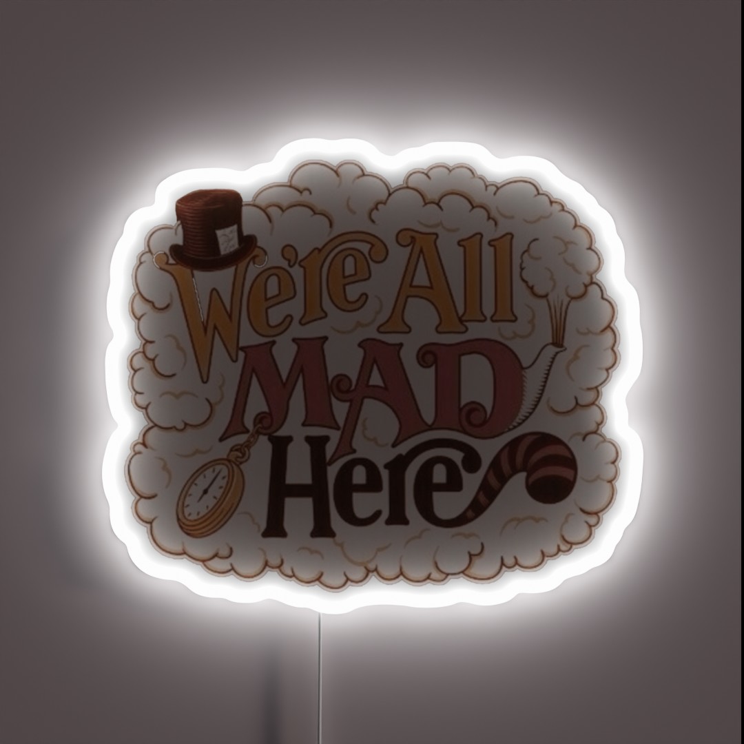 Bring a touch of whimsy and wonder to your home or office with our exclusive “We’re All Mad Here” RGB neon sign. Inspired by Lewis Carroll’s beloved classic, this eye-catching accessory is sure to delight fans of all ages.