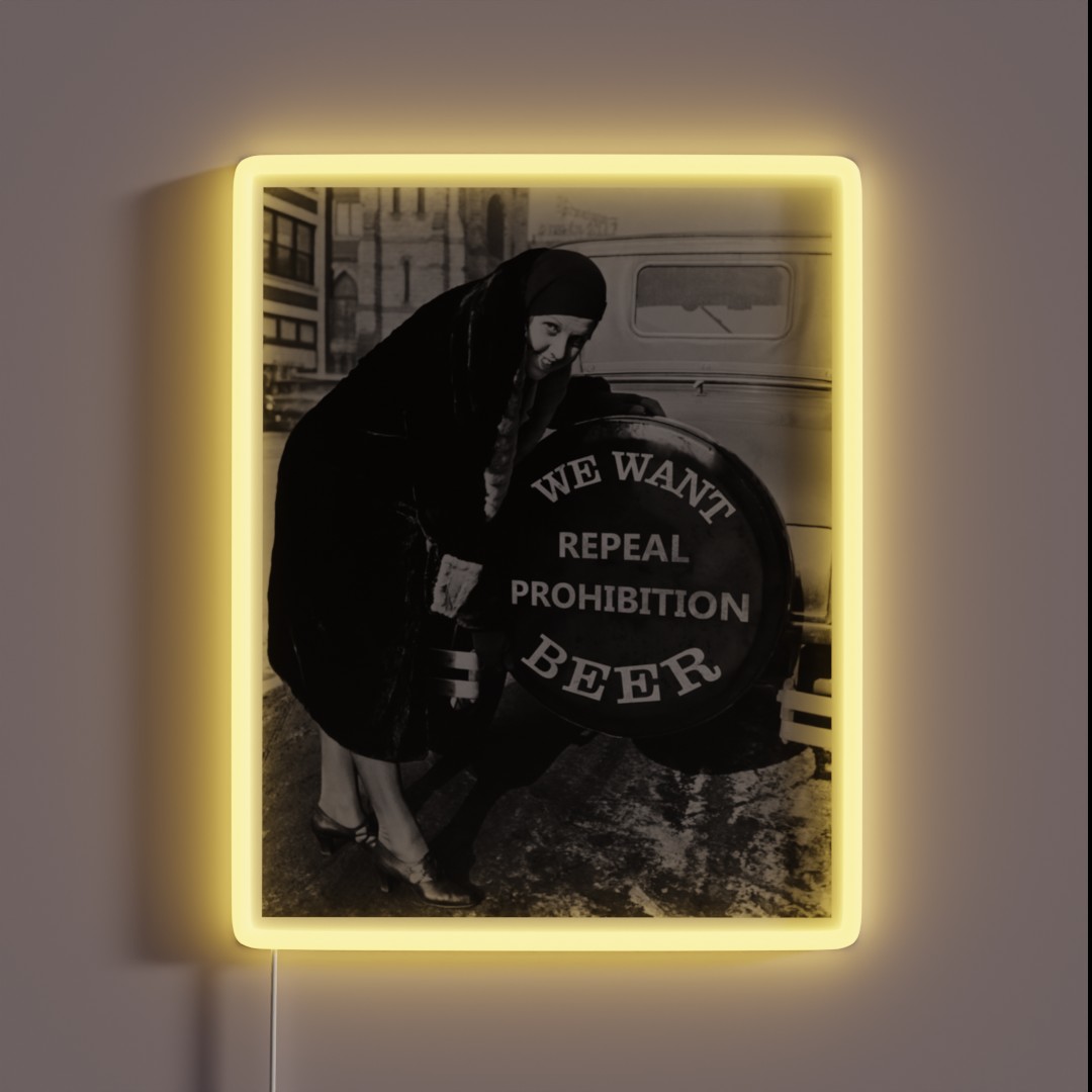 This We Want BEER Repeal Prohibition c 1927 RGB neon sign is not only a decorative piece but also a conversation starter. Its rich history and vibrant colors will transport you back to the Prohibition era, when the thirst for beer was finally quenched in 1933.