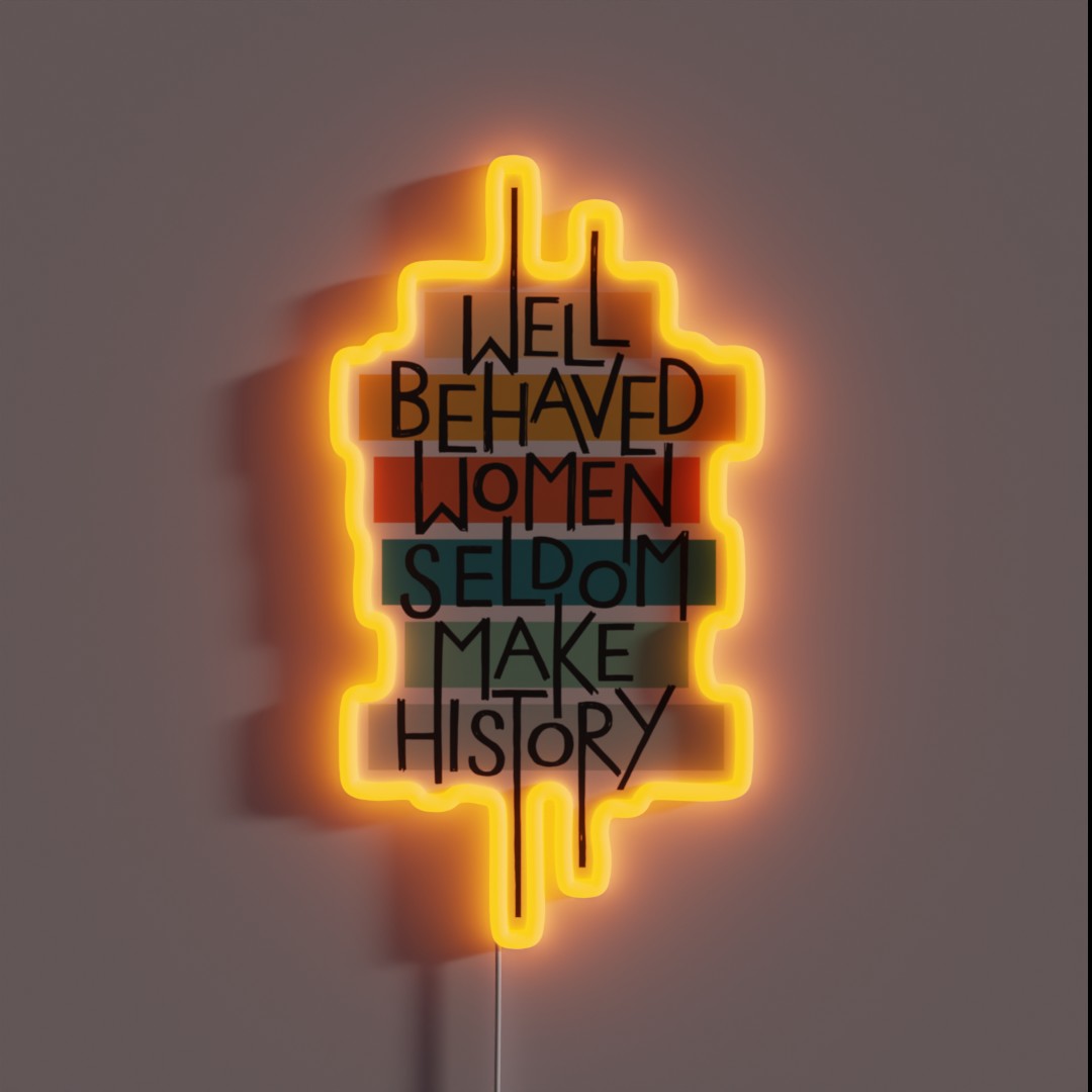 Add a touch of sass and femininity to any space with our ‘Well Behaved Women Rarely Make History’ RGB neon sign, a bold and eye-catching conversation starter that celebrates female empowerment and individuality.