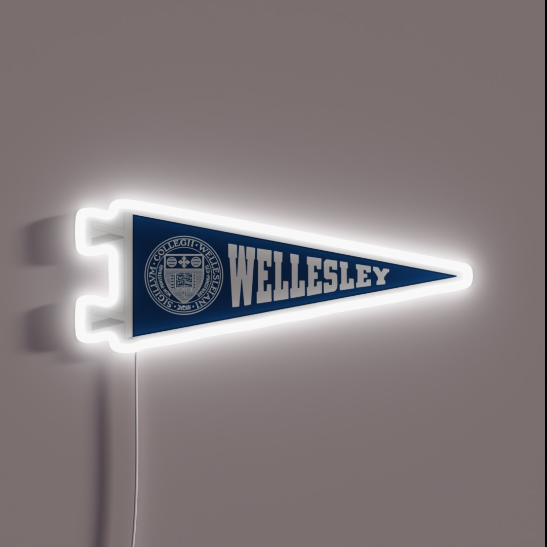 Wellesley College spirit shines bright with our official Wellesley Pennant RGB neon sign, perfect for dorm rooms and offices to showcase school pride and add a pop of color.