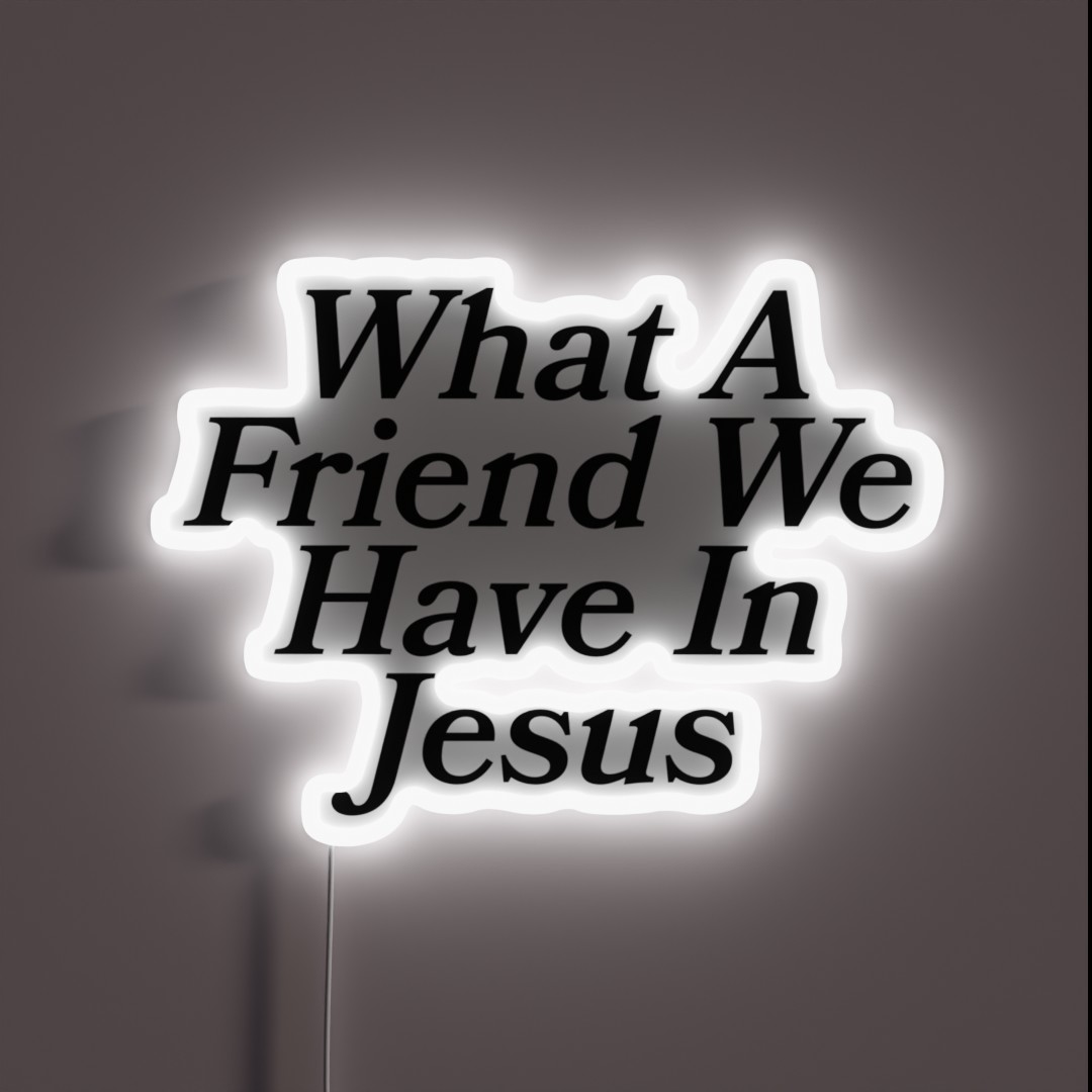 Find solace and inspiration with this stunning **What a Friend We Have In Jesus RGB Neon Sign**, a beautiful display of faith and devotion in your home or place of worship.