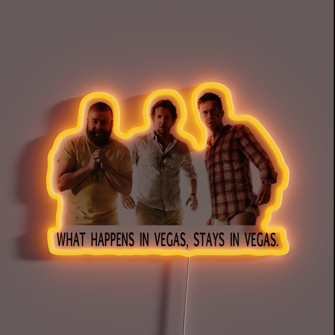 Get ready to light up your man cave or game room with this hilarious ‘What happens in Vegas stays in Vegas’ RGB neon sign, inspired by the classic comedy film ‘The Hangover’, perfect for any Vegas fan or party lover.