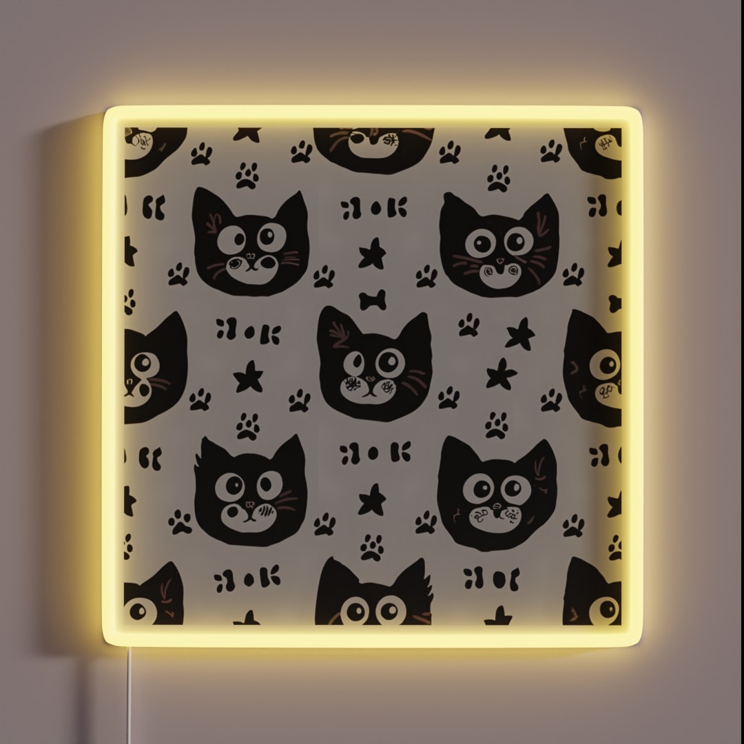 **Whimsical Cat Doodles Playful Pattern RGB Neon Sign**