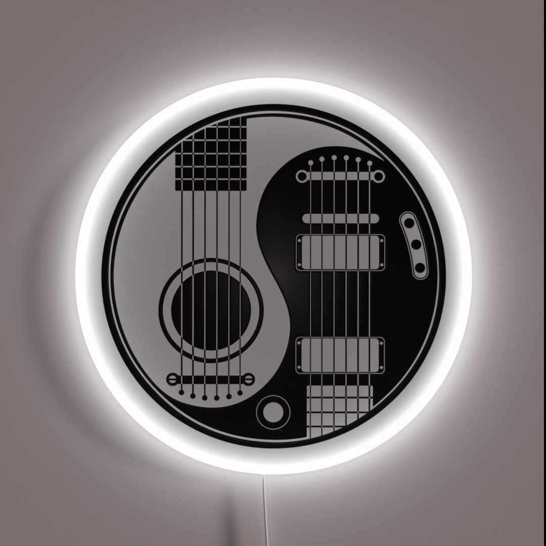 Balance harmony with the Yin Yang RGB neon guitar sign, featuring dual white and black acoustic electric guitars in perfect yin-yang symmetry, adding a touch of Eastern-inspired zen to your music space.