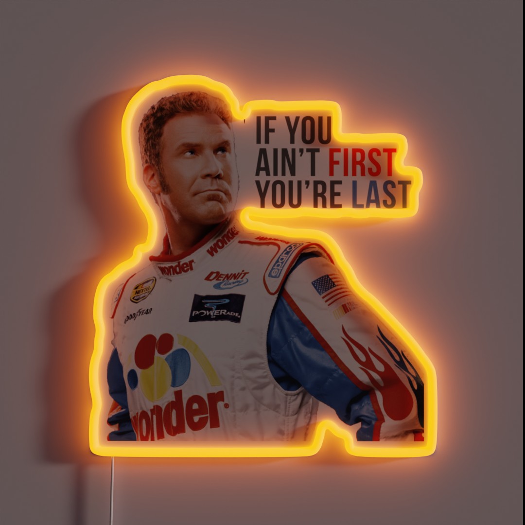 Are you ready to put the pedal to the metal? Look no further than this authentic Will Ferrell Talladega Nights inspired neon sign featuring Ricky Bobby’s iconic phrase: “If You Ain’t First, You’re Last.” This eye-catching, touchable sign is a must-have for any racing fan or enthusiast of the hilarious comedy classic.