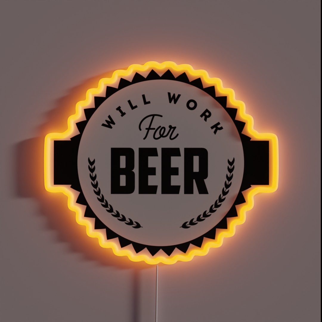 Add a touch of personality to your home bar with our colorful ‘Will Work for Beer’ RGB Neon Sign, perfect for beer enthusiasts and office decor.