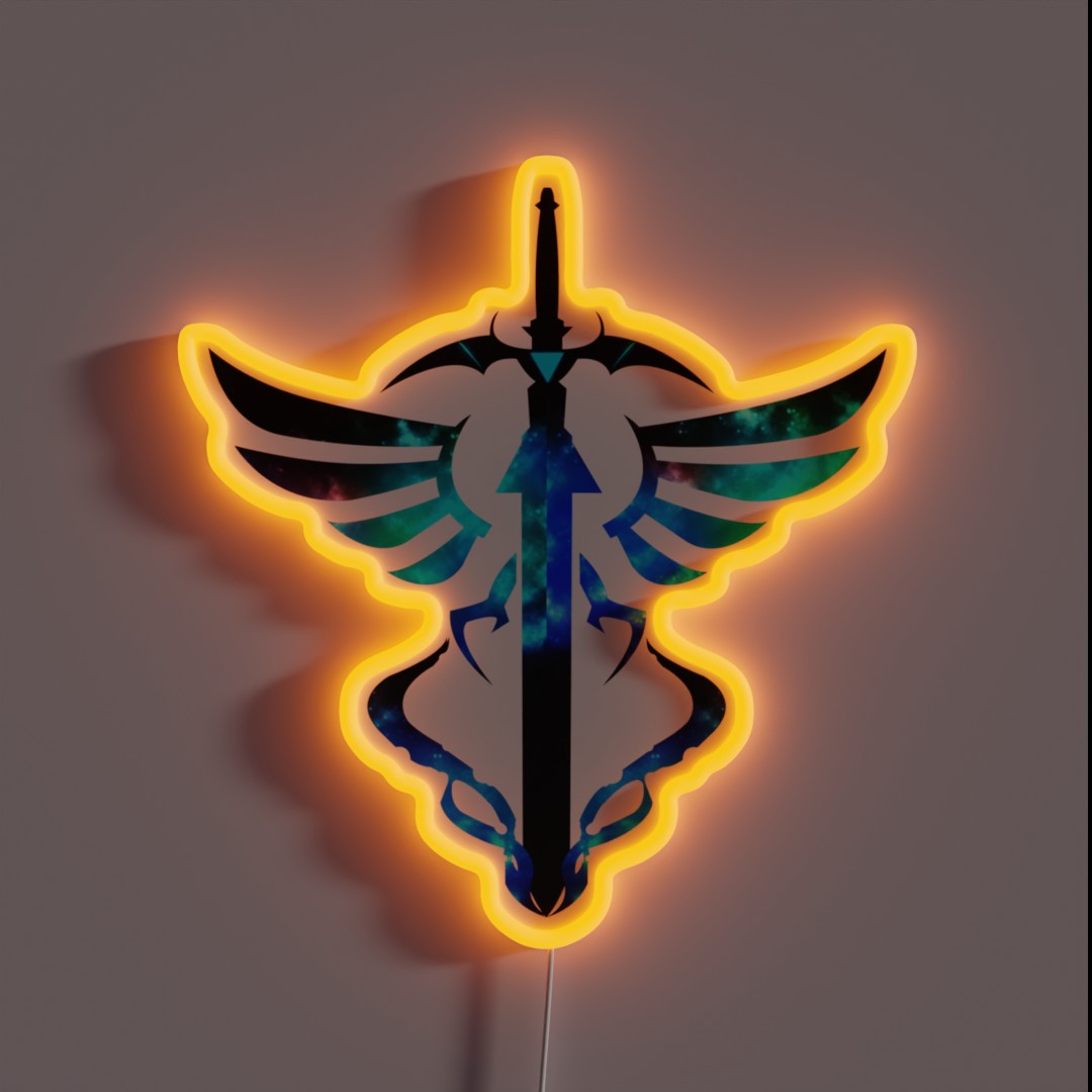A vibrant and customizable RGB neon sign that adds a touch of futuristic style to any room, featuring dynamic wing-shaped design with programmable color-changing capabilities.