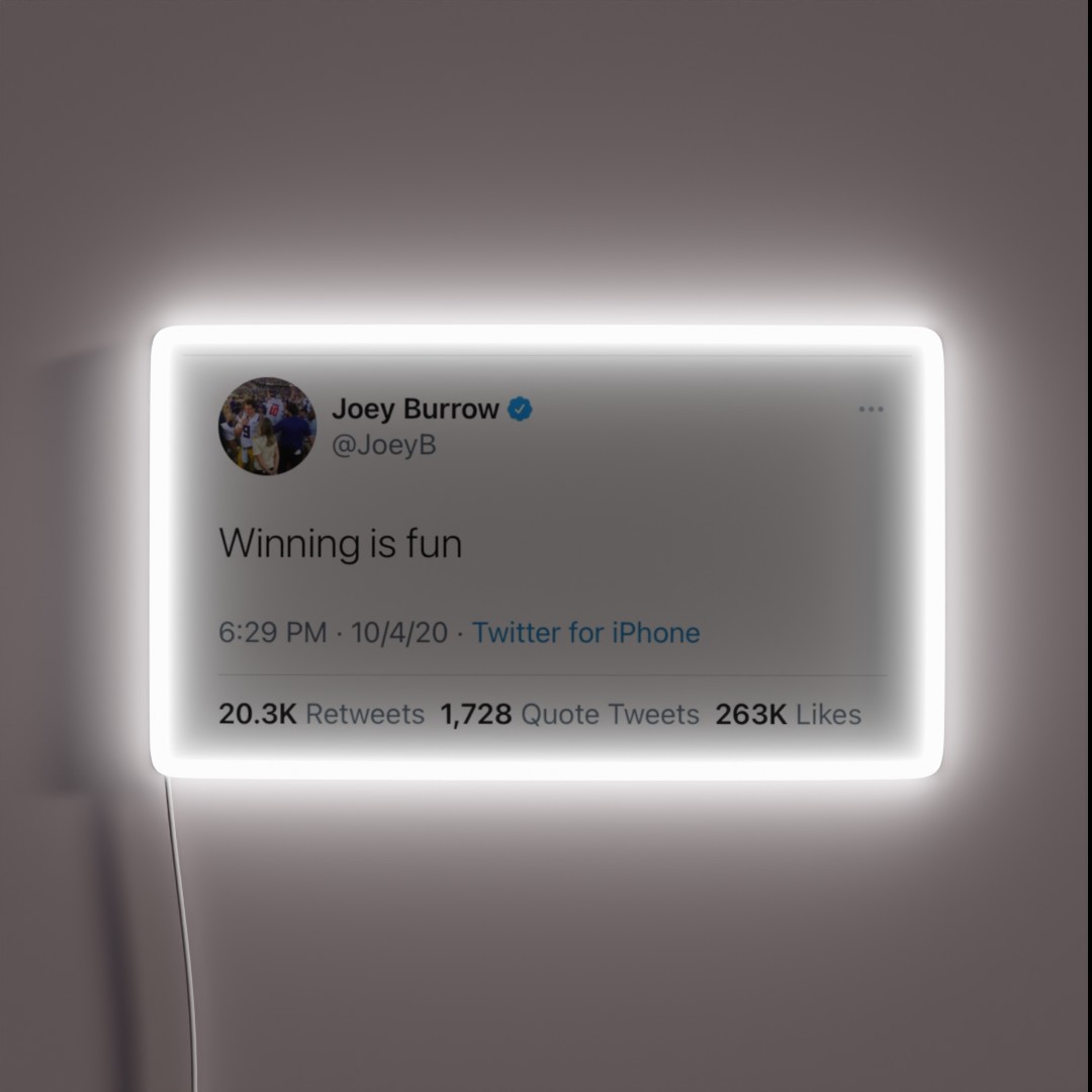 Winning Is Fun Joe Burrow Tweet RGB Neon Sign