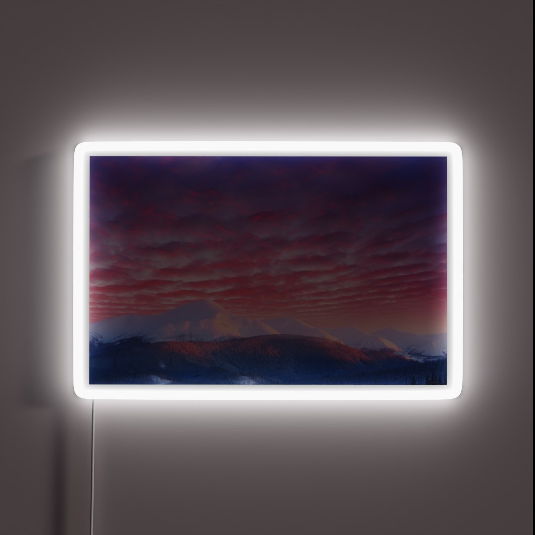 Bring the magic of winter into your home or office with our stunning Winter Landscape With Snowy Mountain RGB neon sign! This breathtaking display features a serene snowy mountain scene, illuminated by vibrant colors that can be controlled to your liking.