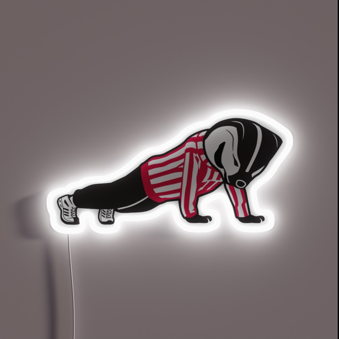 Unlike traditional glass neon signs, this durable LED technology is shatterproof and long-lasting, ensuring years of vibrant illumination without the risk of breakage. Perfect for Wisconsin Badgers fans, alumni, or anyone who wants to showcase their school pride, this Bucky Badger Pushups RGB neon sign is an unbeatable addition to any space. Get ready to show off your spirit in a whole new light!