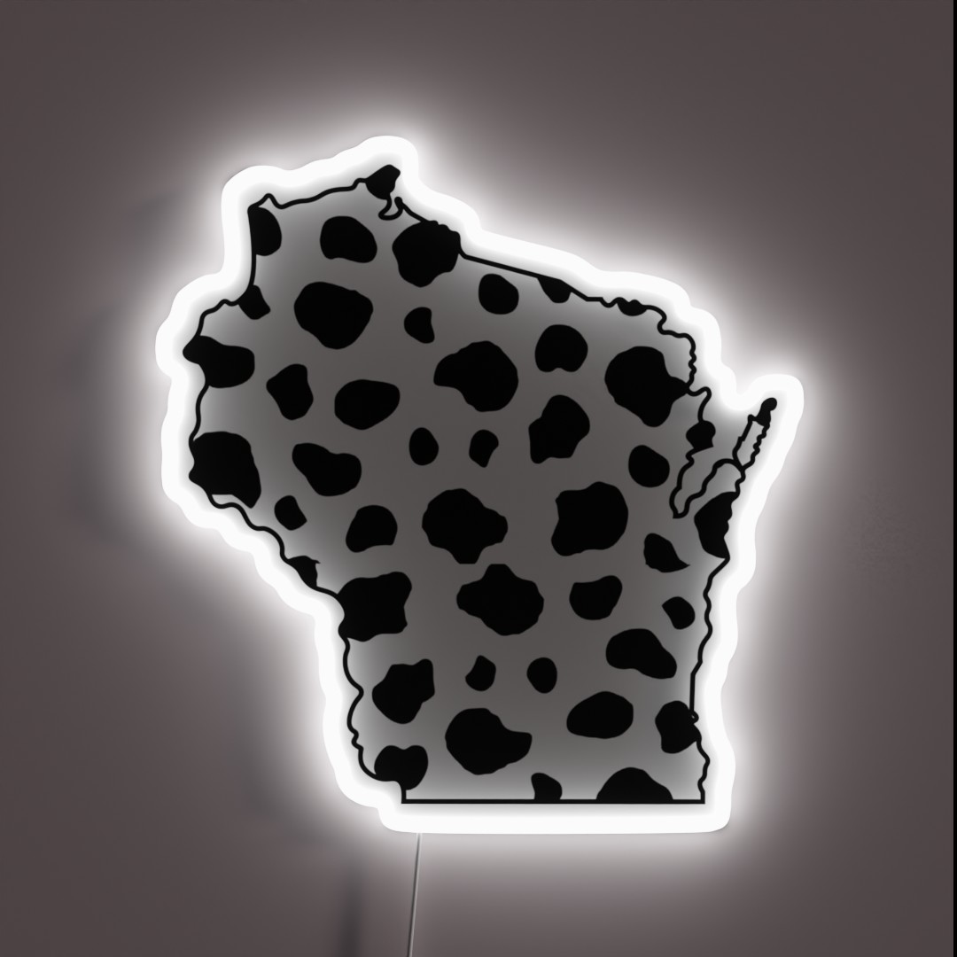 Add a touch of rural charm to your space with our Wisconsin cow print RGB neon sign, featuring a unique blend of state pride and country flair in vibrant, customizable colors.