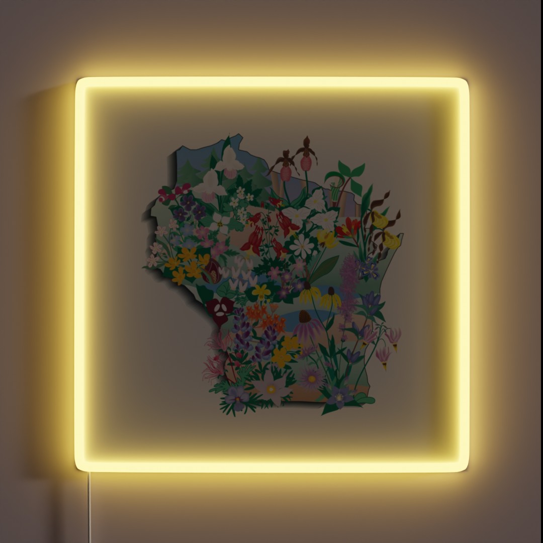 **Illuminate Your Space with the Wisconsin Wildflowers RGB Neon Sign**