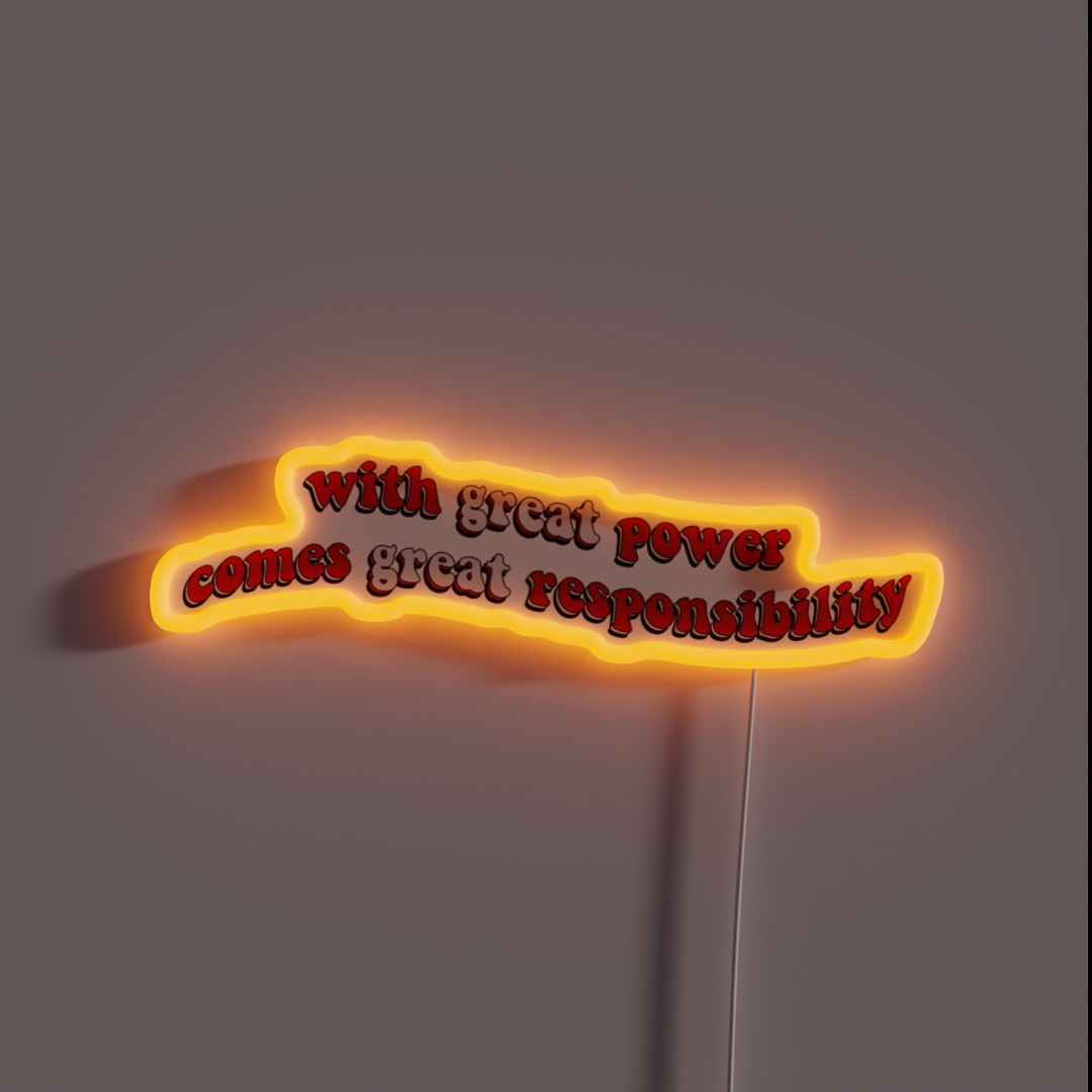 Embody your inner hero with our iconic ‘With Great Power Comes Great Responsibility’ RGB neon sign, perfect for Marvel fans and those who live by the mantra of accountability.