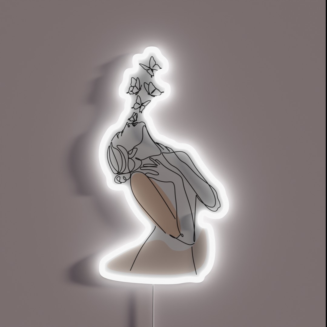 **Woman Face Line Drawing One Line Butterfly Art Feminine Print Abstract Female Outline Poster Simple Line Art Minimalist Woman Wall Art RGB Neon Sign**
