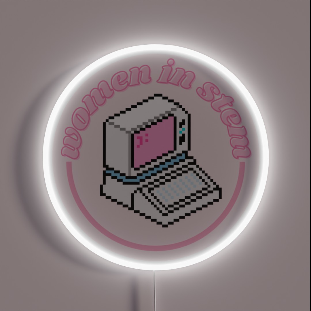 RGB Neon Sign ‘Women in STEM’ – Celebrate female pioneers in computer science with this vibrant pastel pink background featuring a bold, eye-catching design.