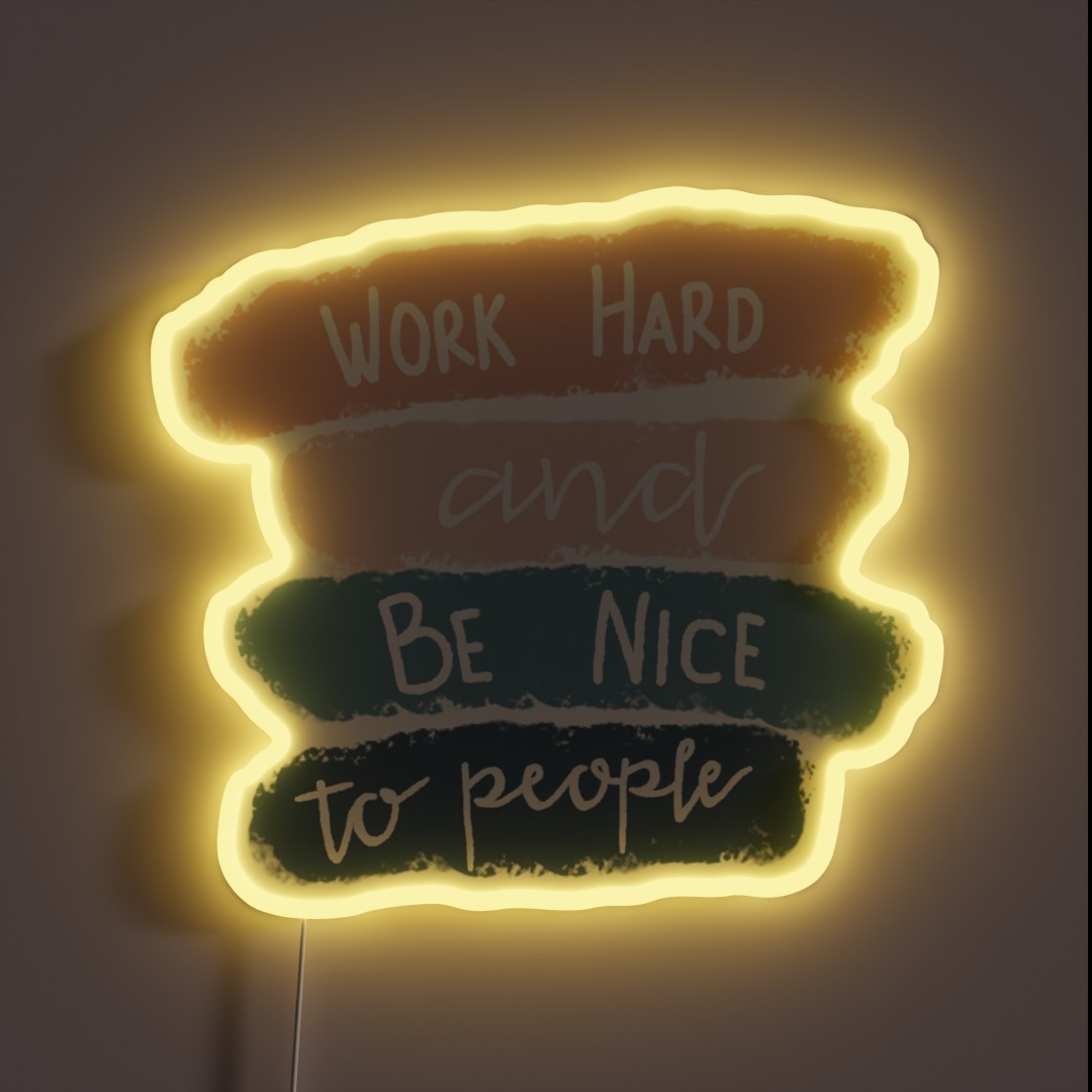 Brighten up any space with this motivational ‘Work Hard and Be Nice’ RGB neon sign, perfect for offices, homes, or rooms requiring a boost of inspiration.