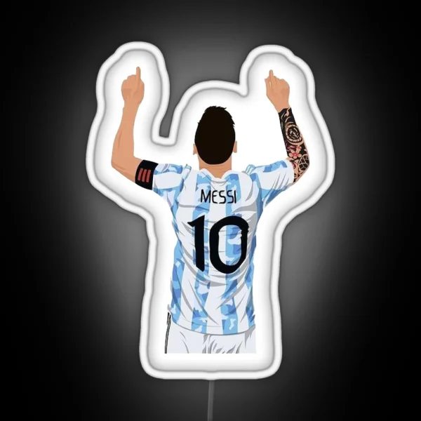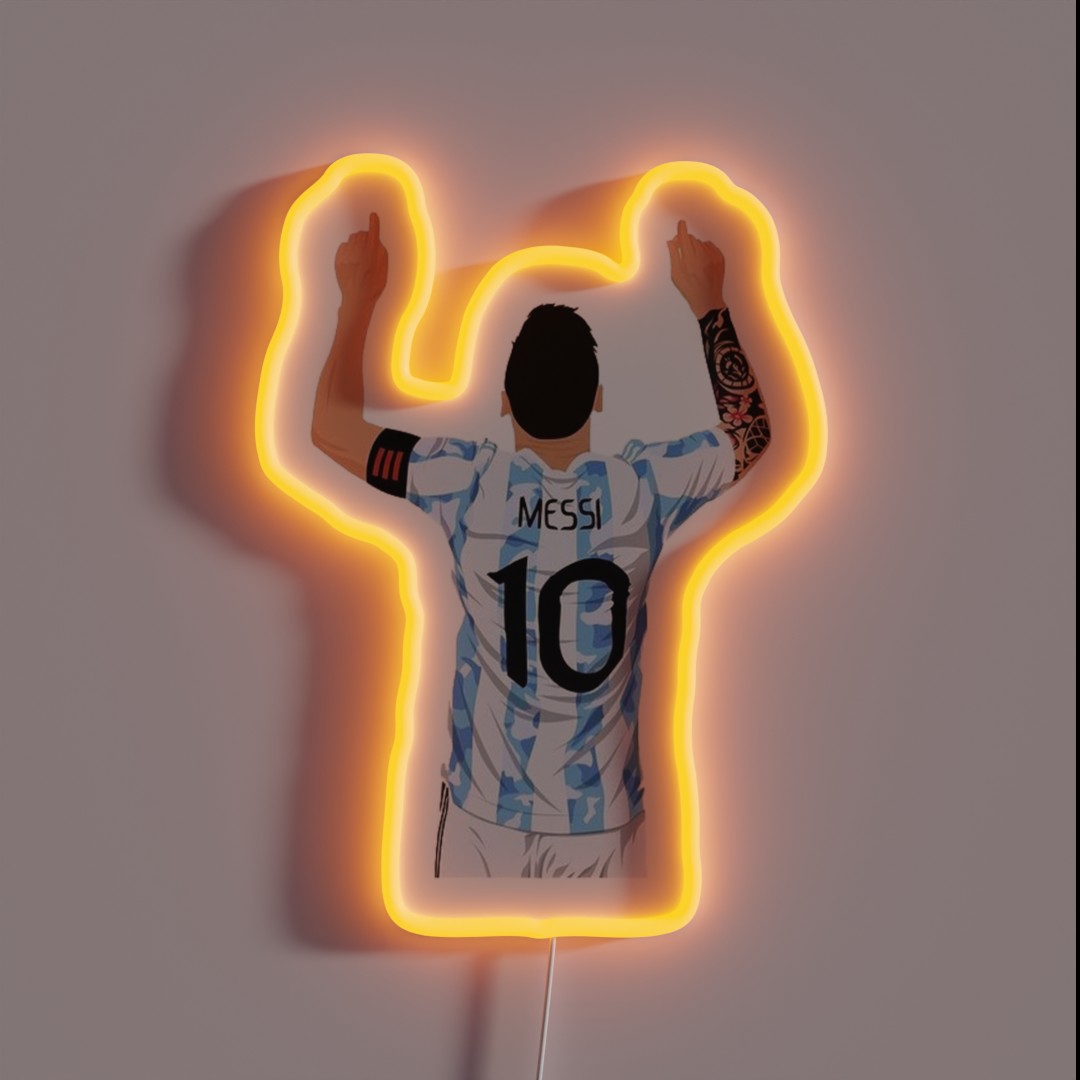 Display your passion for Argentine soccer with this vibrant World Cup-inspired neon sign featuring Lionel Messi’s iconic image in bold RGB colors.