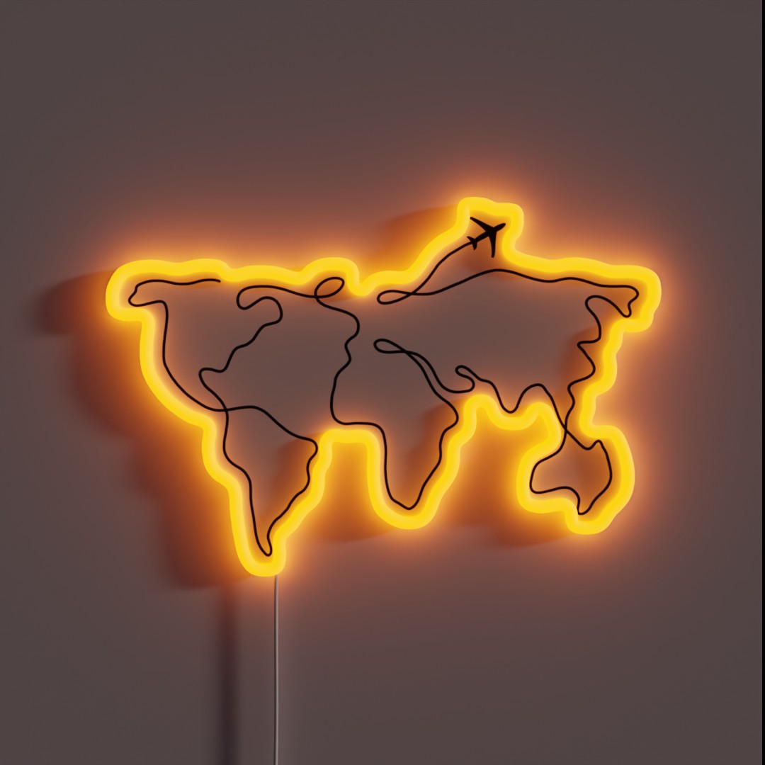 **Illuminate Your Space with Our Vibrant World Map Line Art Neon Sign**