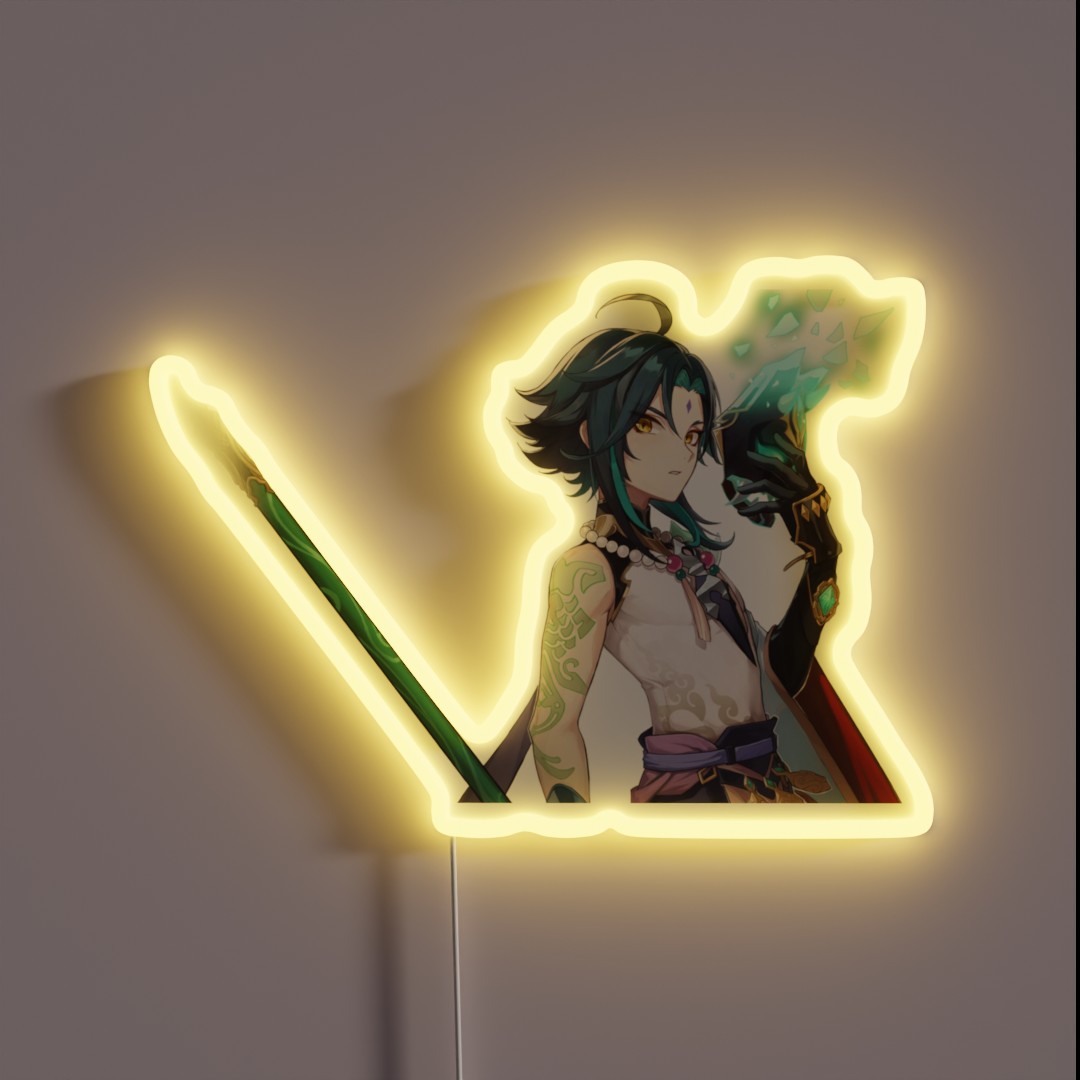 Dreamy Xiao-inspired RGB neon sign with delicate design, perfect for adding a touch of Teyvat charm to your gaming setup or room decor.