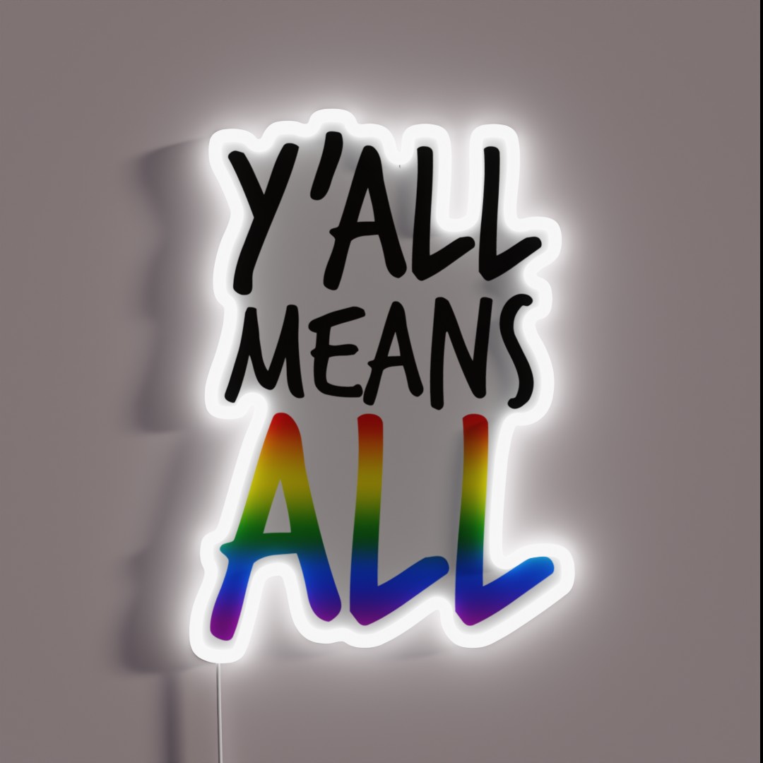 Mean All Means All: A vibrant, 12-inch long LGBTQ+ rainbow pride symbol made from high-quality RGB neon lights, perfect for any home or business looking to showcase inclusivity and acceptance.