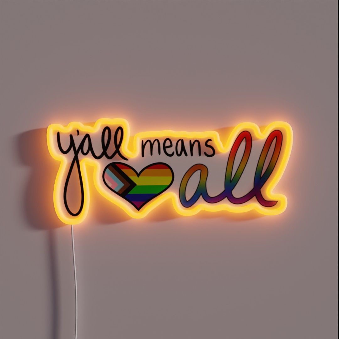 Add a bold touch to your space with our ‘Y all means ALL’ RGB neon sign, featuring vibrant colors and eye-catching design for a unique statement piece.
